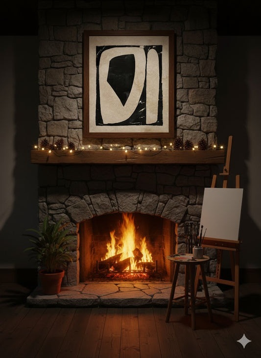 Cozy Snowy Cottage Framed Canvas Wall Art — Winter Holiday Home Décor