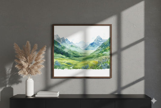 Framed Matte Canvas - Serene Mountain Meadow Landscape Art