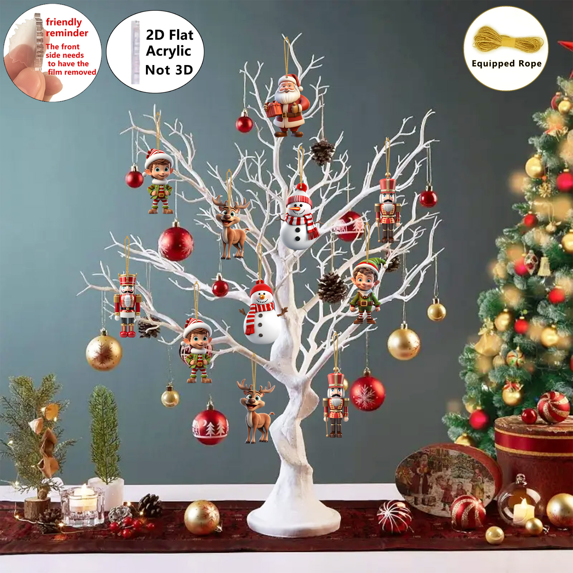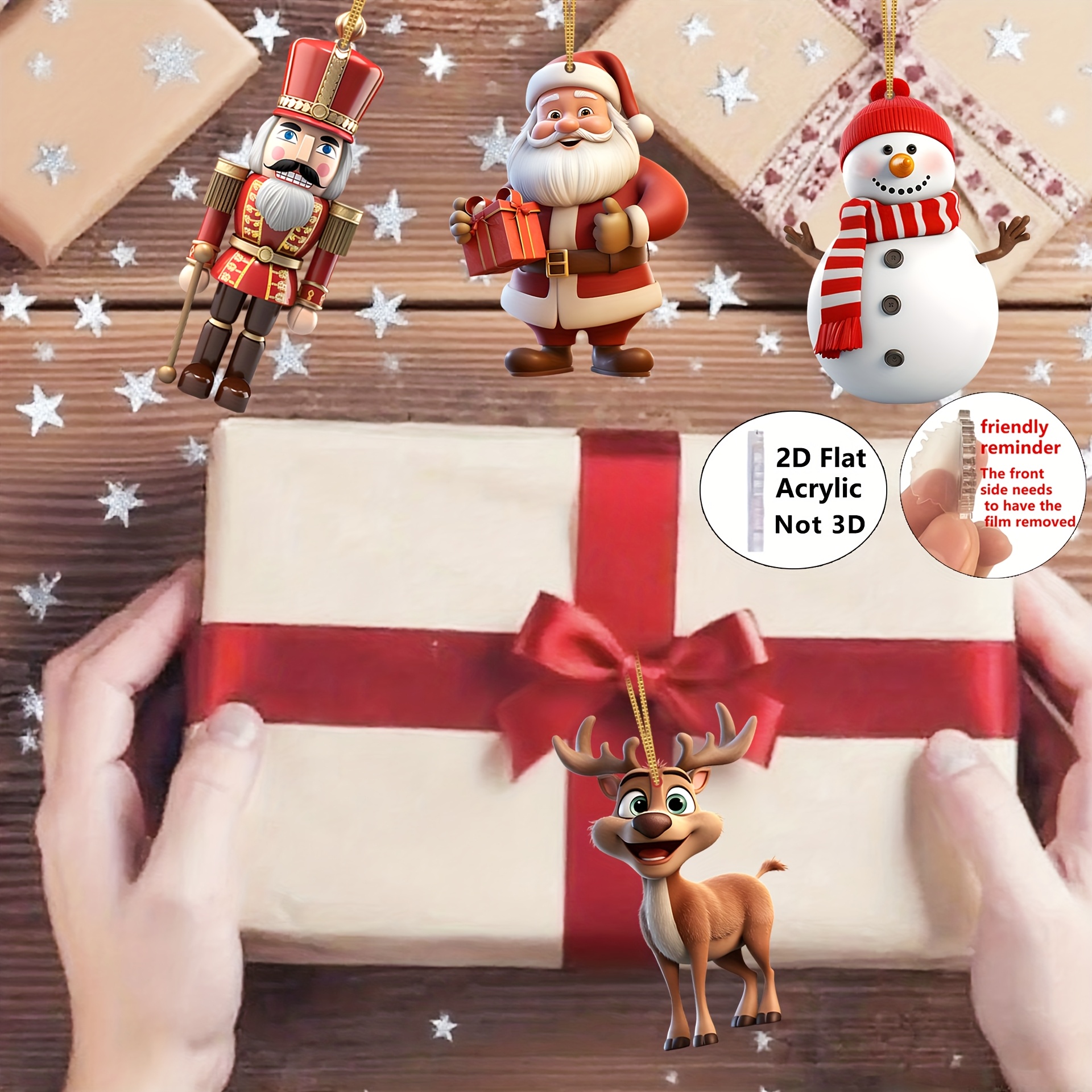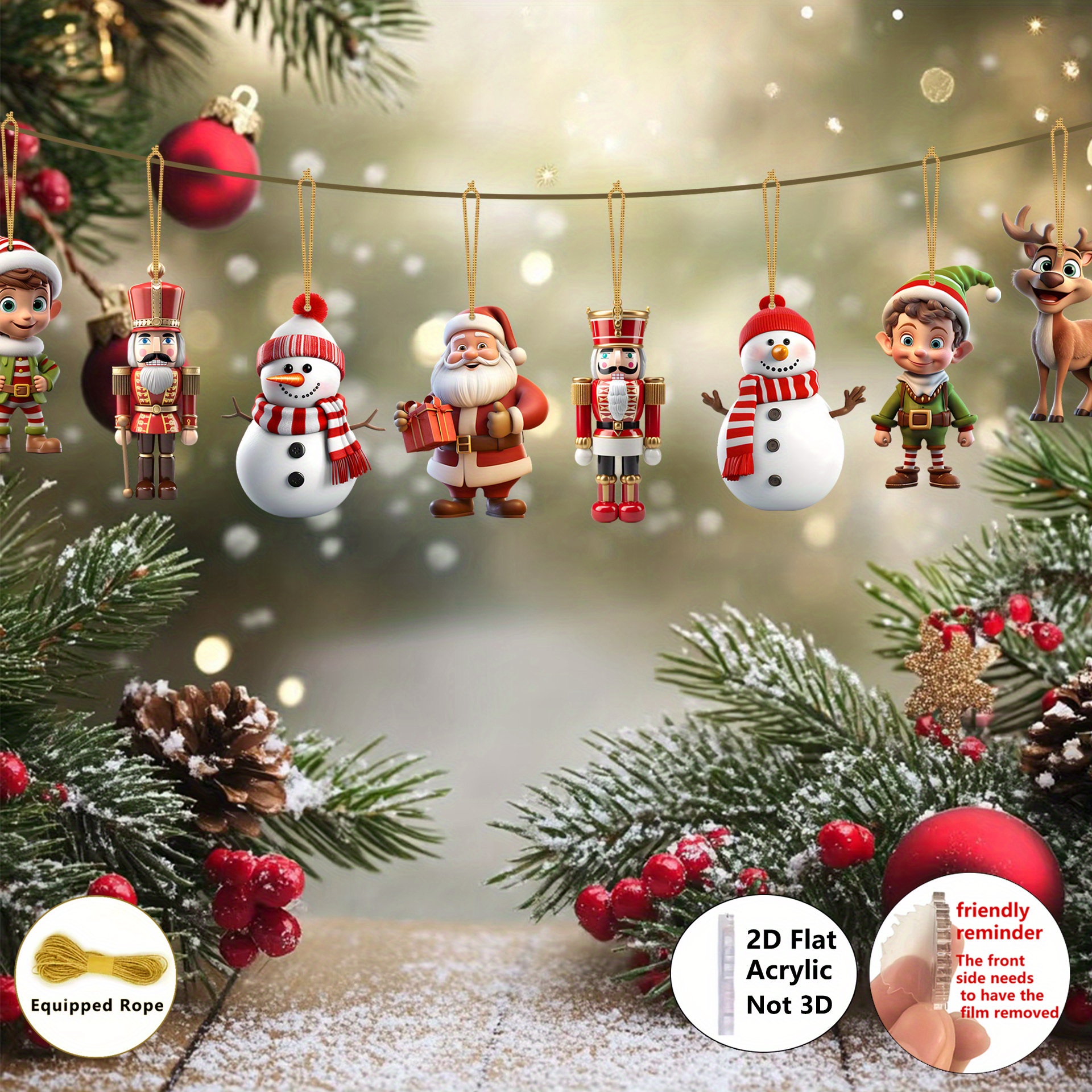[Christmas Decor] 2D Flat, 2D Flat-8pcs Christmas Acrylic Charm-Santa Claus, Nutcracker Soldier, Snowman Various Combination Pendant, Home, Classroom, Office, Christmas Tree Simulation Tree Decoration, Gift Giving Logo, Chris