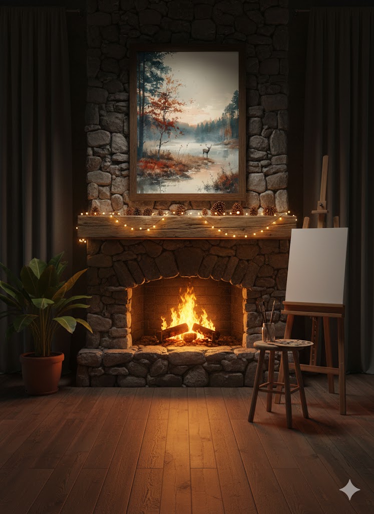 A serene matte canvas print framed in deep black pine, this piece brings the hush of an early-mist forest into your room. Soft, painterly brushstrokes capture a lakeside sunrise—muted pinks and warm ochres drift through fog while two deer pause at the water’s edge. The textured canvas finish and vibrant, UL-certified Greenguard Gold inks keep colors true without glare, and the slim frame gives the artwork a modern, gallery-ready presence. Hang it in a living room nook, reading corner, or entryway to invite calm and a quiet, woodland moment into daily life.