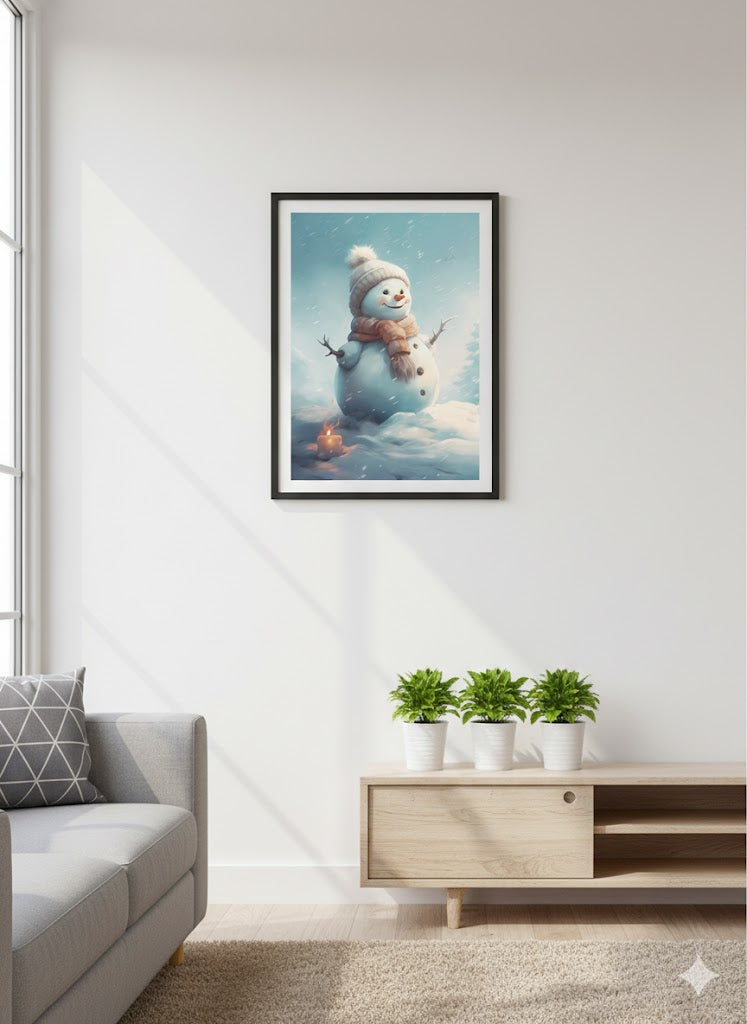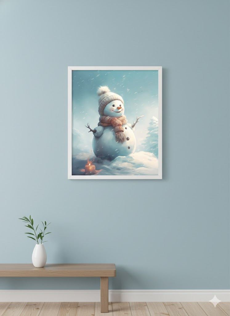 Framed Snowman Canvas Art — Cute Winter Holiday Wall Decor